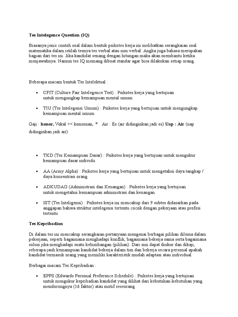 Contoh Soal Psikotes Masuk Kerja Cpns Bumn Swasta Dan