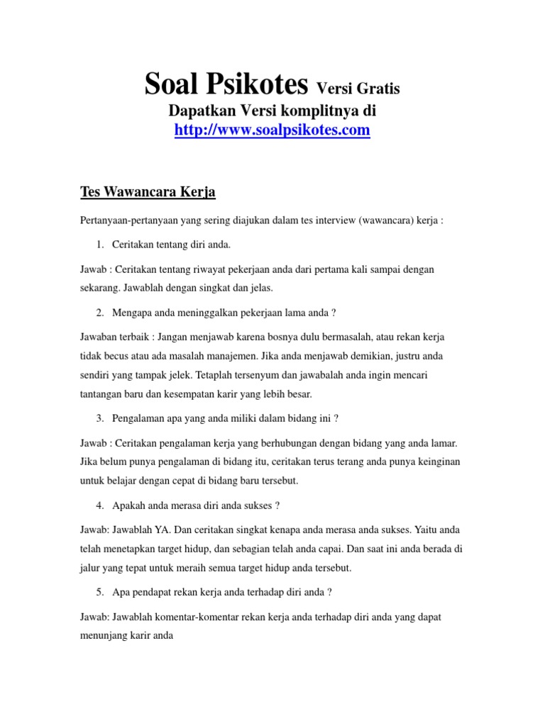 Contoh Soal Tes Psikotes Tpa Wawancara Kerja Di Pt Gudang