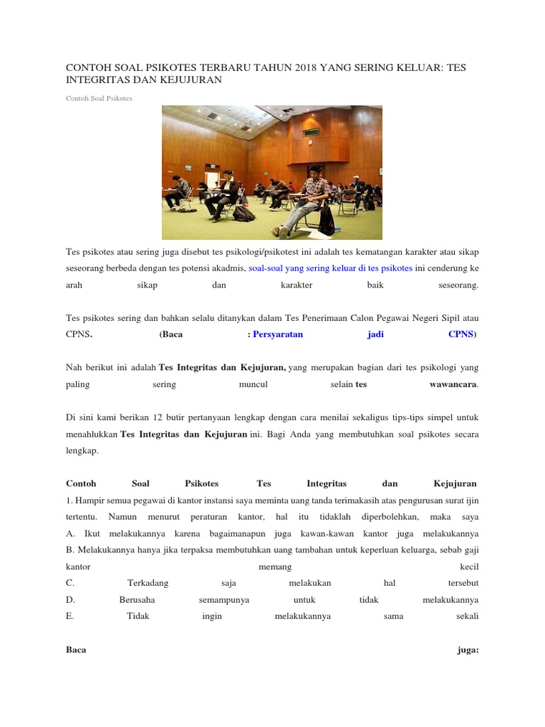Contoh Soal Tes Psikologi Integritas Dan Kejujuran Ipdn