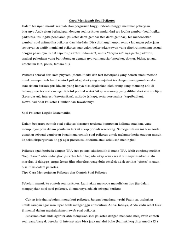 Contoh Soal Psikotes Nusantara Sehat Pdf Blog Muslimah Soliha