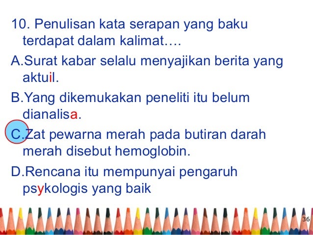 Teks berikut untuk soal nomor 1 dan 2! Sedangkan tidak semua kalimat baku bisa menyampaikan gagasan utamanya. Meskipun hanya sekadar memberi saran, penyampaiannya perlu diperhatikan. Contoh kalimat baku dan kalimat tidak baku. Kata tidak baku juga memiliki ejaan yang tidak sesuai dengan kbbi. Syarat kalimat baku aglutinatif (dalam pembentukan kata kejadian bersistem penempelan imbuhan pada bentuk dasarnya). Gunakan kamus besar bahasa indonesia untuk lebih meyakinkan bahwa suatu kata tergolong baku atau non baku. Aglutinatif (dalam pembentukan kata kejadian bersistem penempelan imbuhan pada bentuk dasarnya). Perlu diketahui bahwa karena sifat bahasa yang dinamis, kbbi setiap beberapa tahun sekali diperbarui, dan kini kbbi telah sampai pada jilid v. Baku atau tidak bakunya suatu kata ditentukan sesuai pedoman umum ejaan bahasa indonesia yang disempurnakan (eyd). Pengertian bahasa baku menurut ahli. Kata baku dan kata tidak baku dalam kehidupan bisa diterapkan di berbagai macam acara. Kata baku adalah kata yang sesuai dengan kaidah dan ketentuan, sedangkan kata tidak baku 1.
